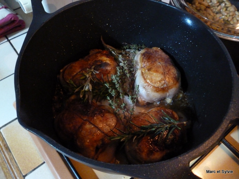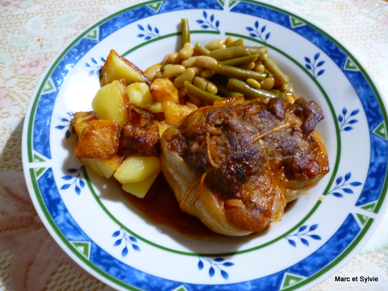 J'ai accompagné mes cuisses de pintade farcies de pommes de terre sautées et de flageolets.