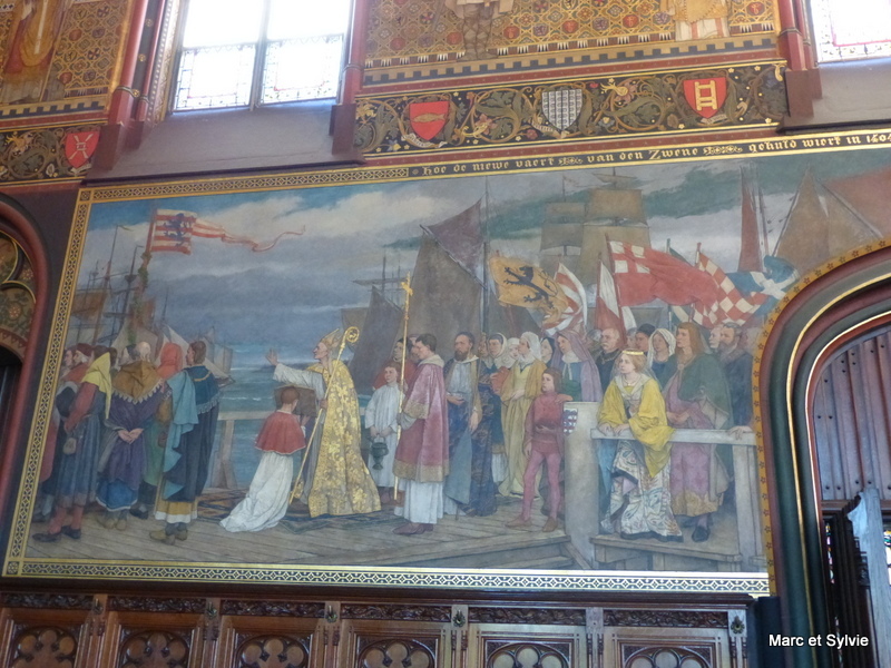 Sur les murs furent peintes des scènes de l'histoire par l'artiste Albrecht De Vriendt.