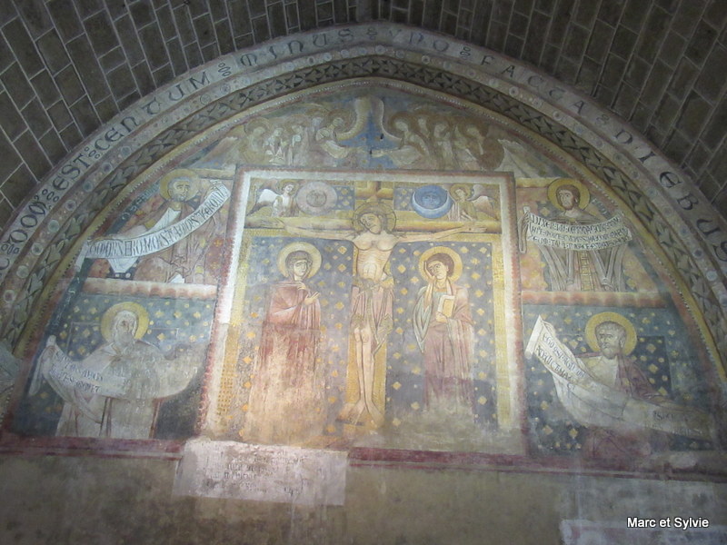 Le mur sud de la salle capitulaire présente une fresque byzantine de la crucifixion.