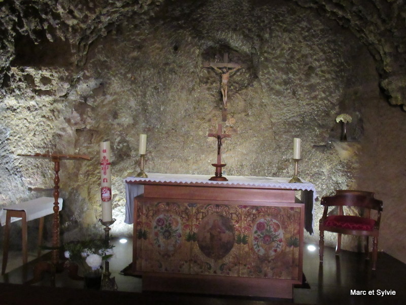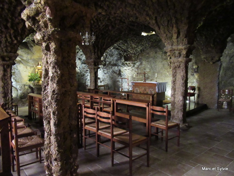 Véritable coeur sanctuaire, la grotte-chapelle est partagée en deux chapelles.