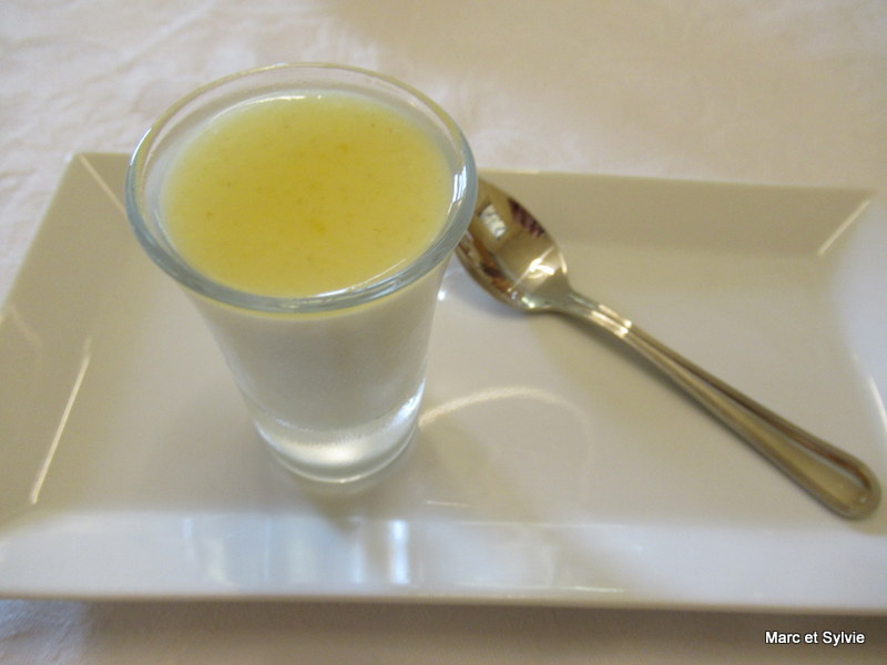 Un second amuse-bouche nous est proposé, une crème vichissoise et sa gelée de légumes.
