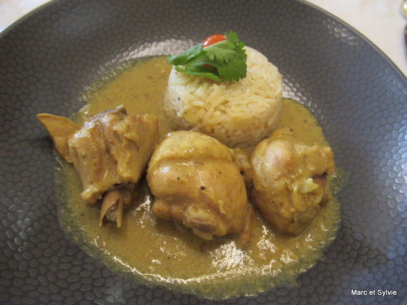 Pour ma part j'ai préféré la fricassée de volaille au lait de coco et curry, pomme, banane et riz pilaf.