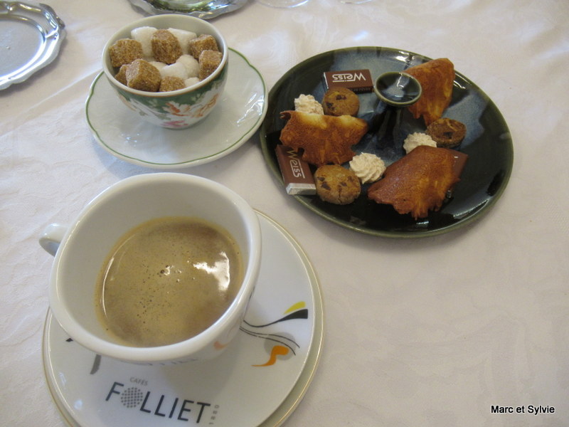 Je ne déroge pas à la règle et je termine mon repas par un café crème. Il est accompagné de petites gourmandises.