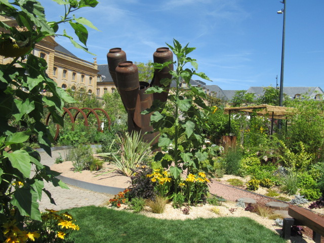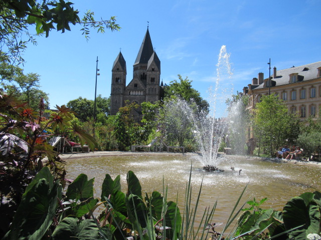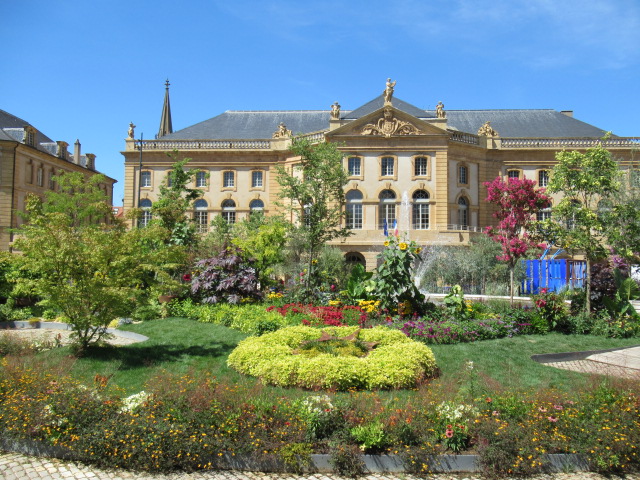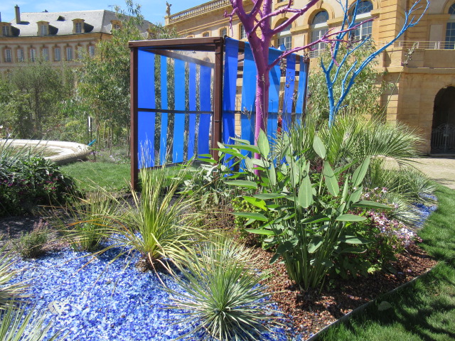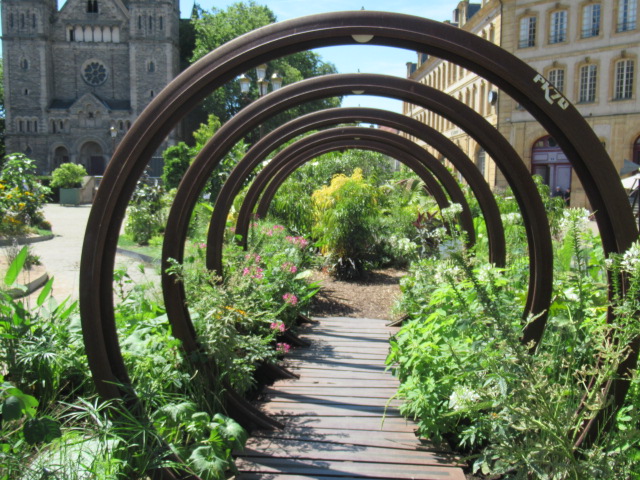 | Installé depuis 2009 sur la place de la Comédie à Metz, commune située dans le département de la Moselle, ce jardin d’été renouvelle sa thématique chaque année. En s’accordant avec l’actualité et les préoccupations environnementales, il propose, cette année, une nouvelle vision de la nature, installée en plein cœur de la ville. Vous pouvez voir ou revoir nos balades en Moselle en cliquant sur ce lien. (11 clichés) Les jardiniers de la ville travaillent pendant plusieurs semaines pour proposer un décor de végétaux où les visiteurs pourront flâner à leur guise. Et les sculptures de Valentin Pierrot s’intègrent au jardin ! Divers types de végétation sont plantés dans différents espaces sur la place de la Comédie en transformant celle-ci en un véritable lieu de rencontre. Invité spécial de cette édition, Valentin Pierrot propose une œuvre autour de la thématique des couleurs. Cet été, en effet, pour l’édition 2022 du jardin éphémère, les jardiniers de la Ville de Metz ont laissé une tache de peinture se répandre dans l’écrin architectural remarquable de la place de la Comédie. Rouge, bleu, jaune, orange, vert, violet ou rose, sans oublier le noir et le blanc ! Pour entrer dans le jardin, on vous déroule le tapis rouge !  Cessez de broyer du noir en surmontant les embûches pour enfin voir la vie en rose. Promenez-vous dans cet espace vert de 1500m2 et admirez cet îlot de fraîcheur de toutes les couleurs. L'édition 2022 du jardin d'été de Metz nous invite à un très beau voyage.  Déambulez, flânez, observez, attardez-vous et profitez !