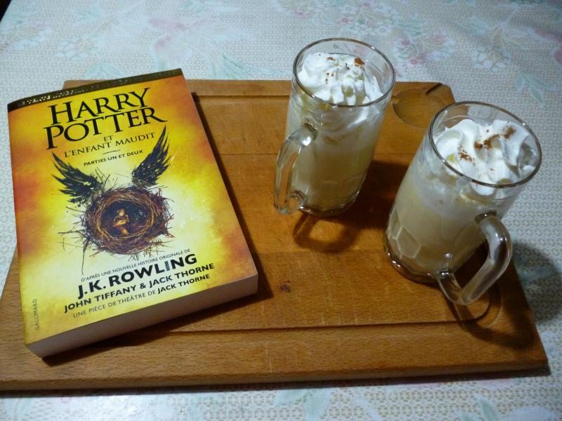 | La Bièraubeurre est une boisson du monde magique servie généralement chaude mais pouvant tout aussi bien être bue froide. Les Bièraubeurres sont vendues à un prix de deux Mornilles à la Tête de Sanglier, auberge située dans le village de Pré-au-Lard. À l'approche des fêtes de Noël, Nicolas vous propose de réaliser la bièraubeurre, une boisson populaire du monde des sorciers. Nicolas s'est inspiré du site "Wiki Harry Potter" pour réaliser cette recette. Les ingrédients pour cette recette (pour deux verres): -25cl de lait -25cl de bière -30g de sucre -20g de beurre -2 oeufs -2 pincées de cannelle -crème chantilly Prenez un saladier et faites blanchir les jaunes d'oeufs avec le sucre et le beurre. Dans une casserole faites chauffer dans une casserole à feu doux le lait et la bière. Incorporez-y la préparation précédente. Fouettez doucement jusqu'à épaississement. Versez la préparation dans les verres. Ajoutez la crème chantilly par-dessus et saupoudrez de cannelle. Vous pouvez retrouver d'autres menus "Noël en cuisine" sur ce lien. Bonne dégustation !