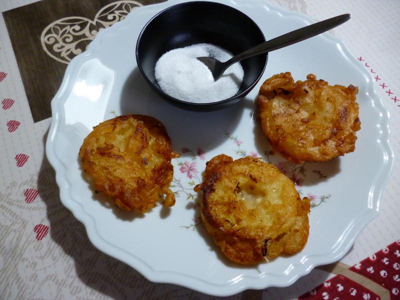 | C'est le week-end, il ne fait pas très chaud dehors, c'est le moment rêvé de réaliser quelques beignets...et pourquoi pas des beignets aux pommes ? Les ingrédients pour cette recette: (4 personnes - préparation 20 minutes - cuisson 15 minutes) -3 ou 4 pommes -1 citron -150g de farine -25l de bière -4 càs de sucre en poudre -sucre glace -1 pincée de sel -un bain de friture Mettez la farine dans un saladier. Creusez un puits. Ajoutez le sel. Versez la bière en mince filet tout en délayant pour obtenir une pâte lisse. Laissez reposer 2 heures dans un endroit tiède. Pressez le jus de citron et versez-le dans une assiette creuse. Ajoutez 5cl d'eau froide. Évidez les pommes avec un vide-pommes. Pelez-les et coupez-les en rondelles de 5 cm d'épaisseur. Passez-les au fur et à mesure dans le jus de citron. Chauffez le bain de friture. Égouttez les pommes et trempez chaque rondelles dans la pâte puis faites-les dorer dans l'huile chaude par petites quantités. Égouttez-les sur une assiette garnie de papier absorbant. Saupoudrez-les de sucre ou de sucre glace et.....bon appétit ! Vous pouvez retrouver d'autres idées "crêpes, gaufres et beignets' sur ce lien.