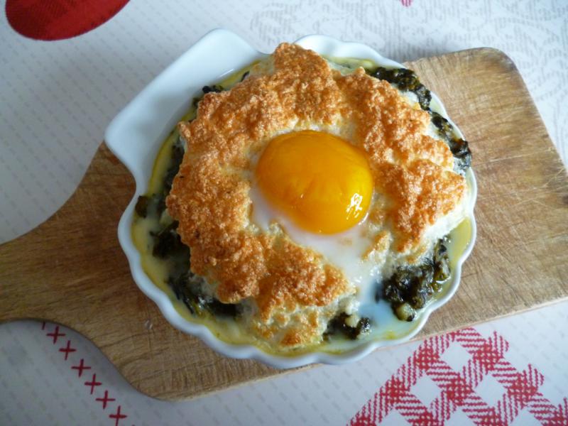 Ce ne sont donc ni des œufs cocotte (cuits au bain-marie), ni un soufflé, ni une omelette soufflée car les jaunes ne sont pas battus.