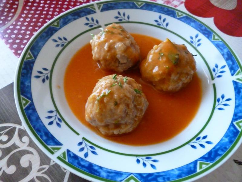 Au moment de sevir, dressez les boulettes dans les assiettes, couvrez de sauce et saupoudrez de persil.