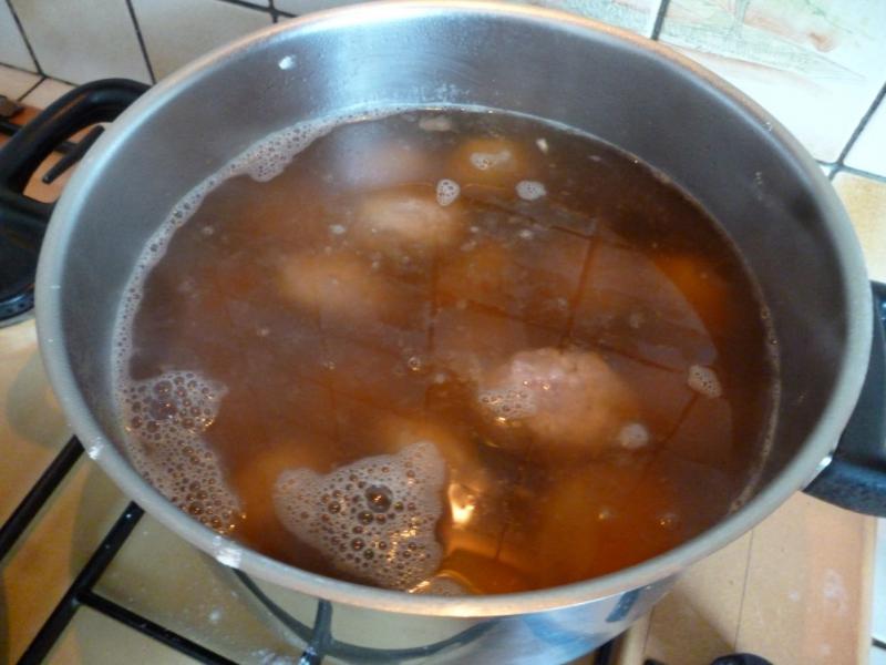 Portez à ébullition puis laissez mijoter sur feu doux le temps de la préparation des boulettes.
