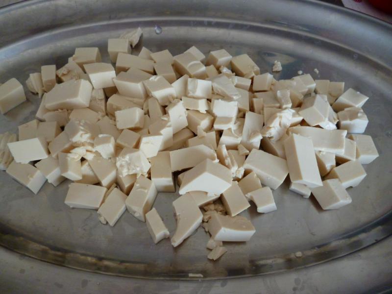 Coupez le tofu en dés.