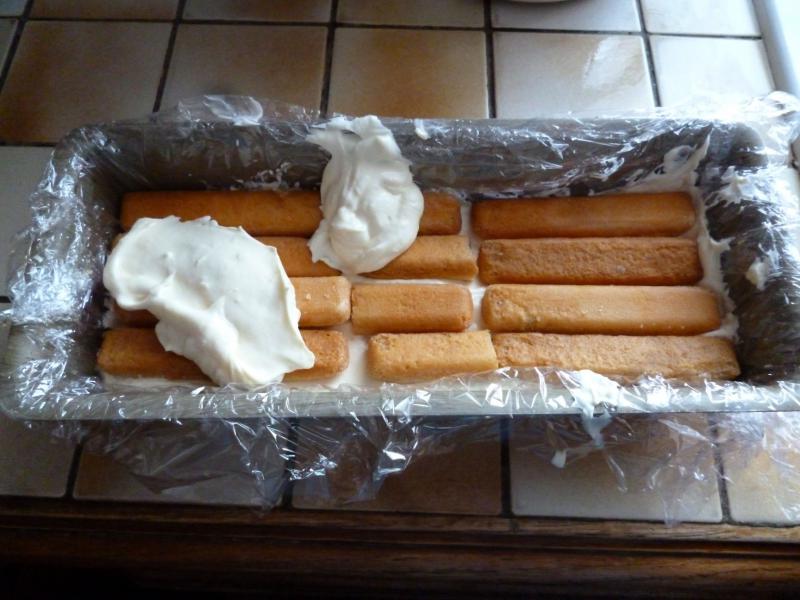 Déposez une couche de crème puis une couche de biscuits trempés dans le café. Recouvrez d'une couche de crème puis de biscuits...continuez jusqu'à hauteur du moule ou épuisement des ingrédients. Terminez par une couche de biscuits. Filmez le moule et placez-le dans le réfrigérateur au moins 24 heures. Sortez la bûche juste au moment de servir et n'oubliez pas de la saupoudrez de cacao en poudre.