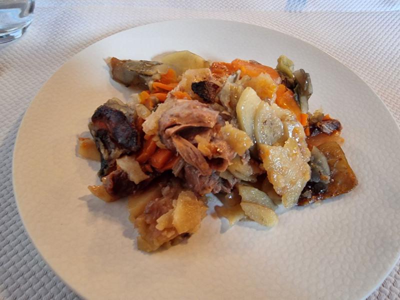 Poursuivons notre voyage gourmand par un bäeckeoffe traditionnel (pommes de terre, poireaux, carottes, porc, bœuf, agneau et pied de porc).