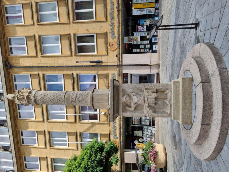 La colonne située dans la Grand’ rue est une reconstitution faite de copies, installée au début des années 1990 pour évoquer le passé gallo-romain de la cité.