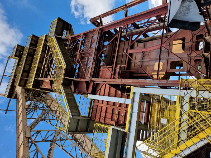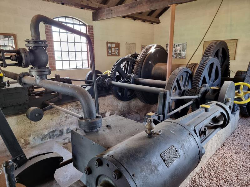Nous arrivons devant le bâtiment qui abrite le treuil à vapeur !