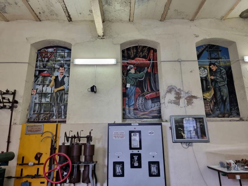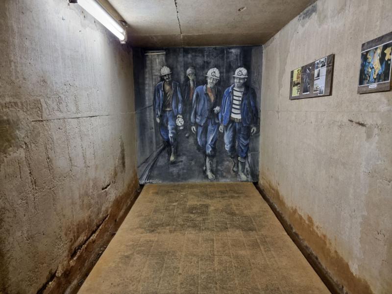 Très belle fresque représentant les mineurs sortant du puits après une journée de travail.
