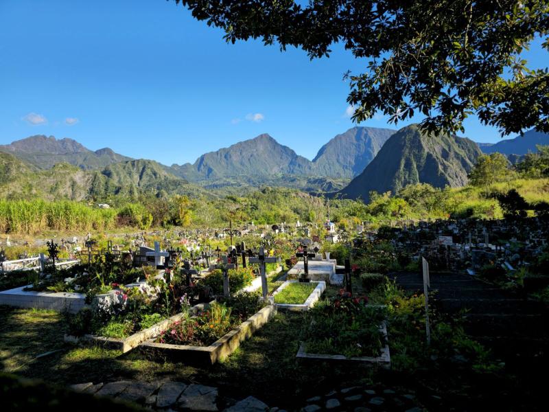 Fleuri et pittoresque, le cimetière offre une superbe vue sur le piton d'Anchaing.