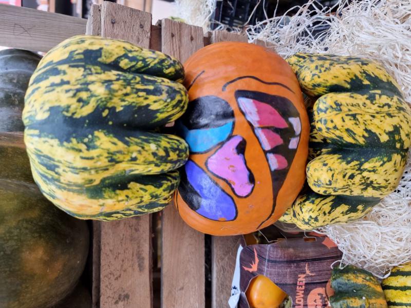 | Halloween est une fête célébrée dans la soirée du 31 octobre, veille de la Toussaint, dont elle tire son nom puisque le mot "Halloween" est une contraction de l'anglais All Hallows Eve qui signifie la «veillée de la Toussaint».   Chaque année, Marc et moi prenons plaisir à aborder le sujet en réalisant des recettes ou en vous narrant des contes....   Aujourd'hui, c'est en allant faire mes courses que j'ai fait de drôles de rencontres !   Bon dimanche à vous qui passez me voir ! Vous pouvez voir ou revoir quelques uns de nos articles "Halloween" en cliquant sur ce lien.