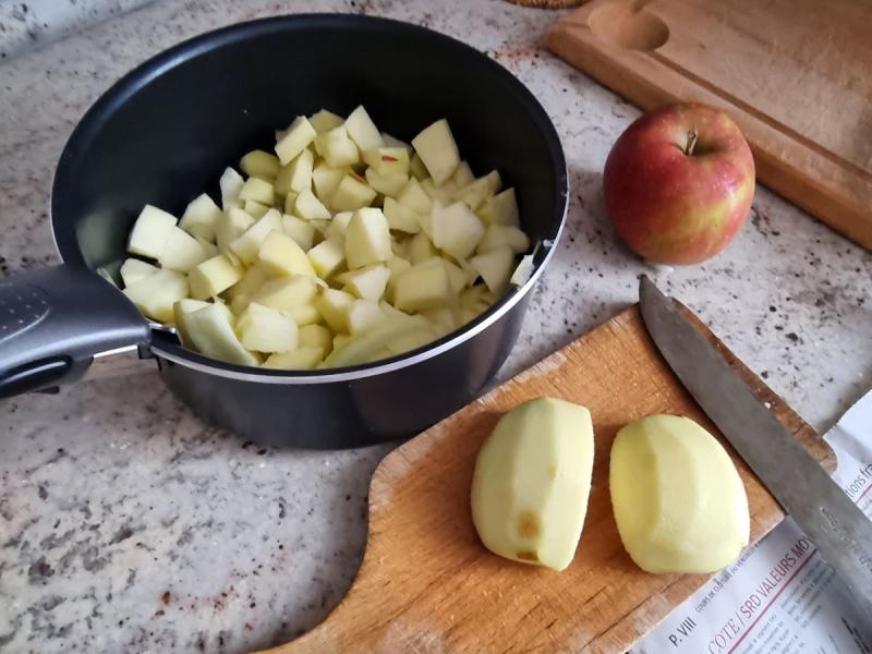 Pelez, lavez et coupez les pommes en dés.