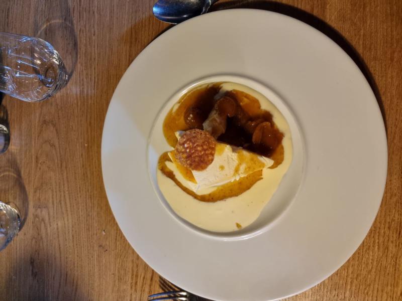 Nos plats furent accompagnés de pommes de terre rôties ainsi que d'un fromage aillé et persillé !
