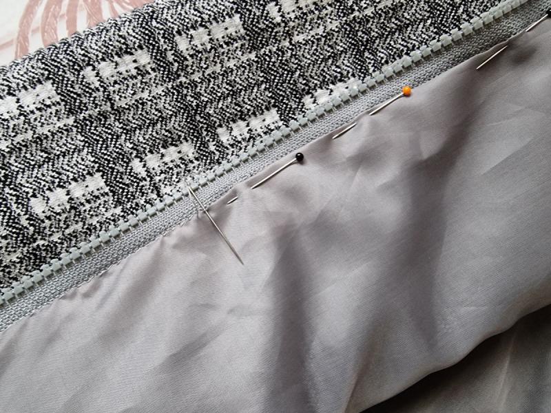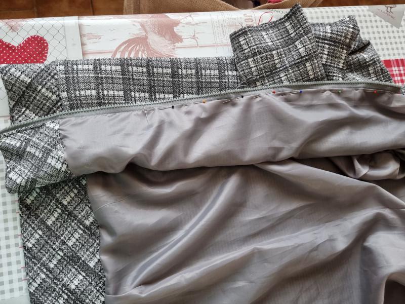 Je suis en train de coudre la doublure sur les deux devants, côté fermeture éclair.