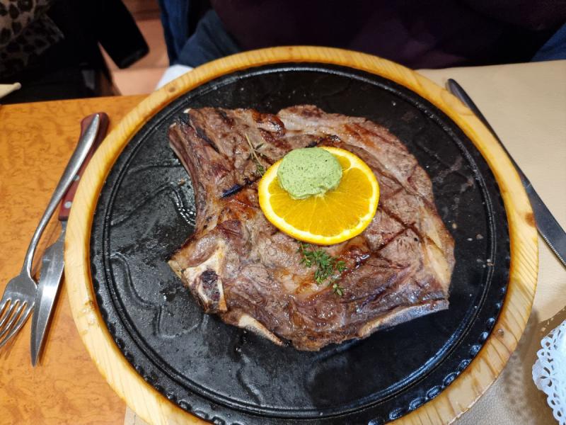 La côte de boeuf à  l'os grillé est magnifique et fait le bonheur de notre ami.