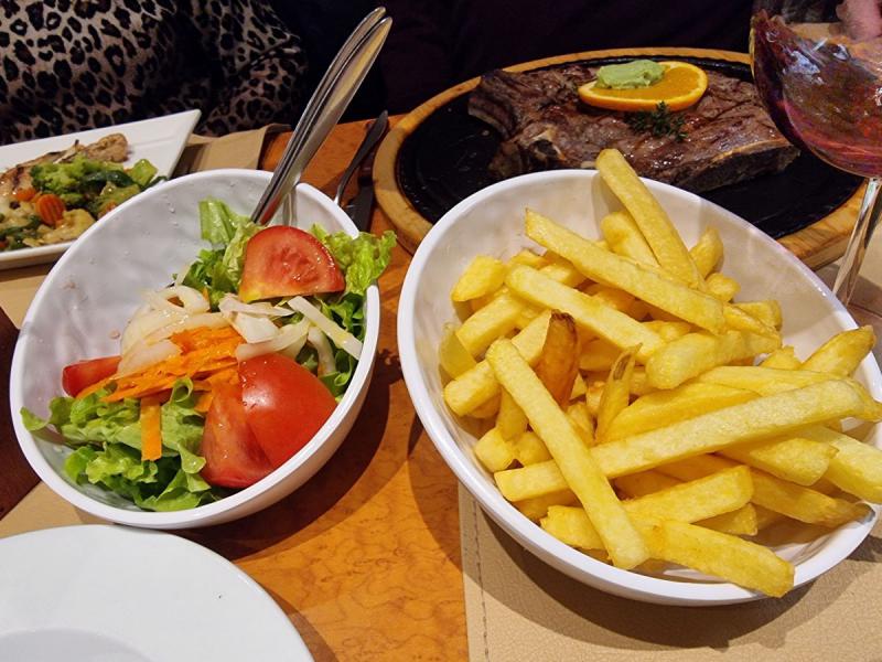 Les plat sont accompagnés de frites, de pommes de terre grillées et de salade.