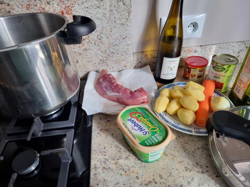 Prenez votre cocotte minute et faites-y chauffer un filet d'huile d'olive et une noisette de beurre.