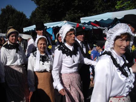 Au marché à la recherche du fromage de Saint-Nectaire, nous avons eu le plaisir de voir un petit défilé d'Auvergnats en costumes traditionnels.