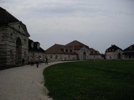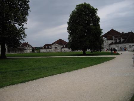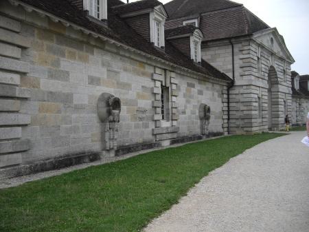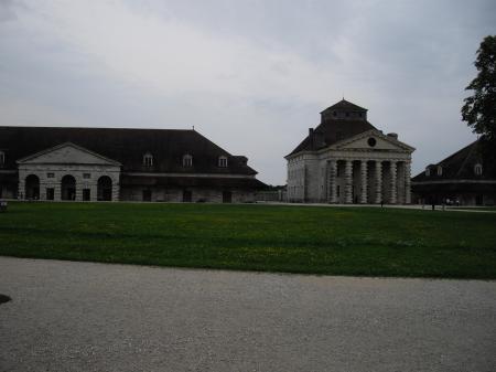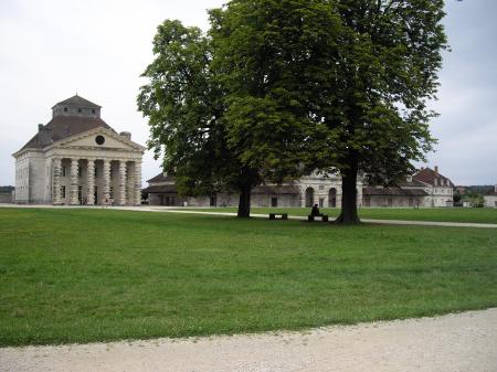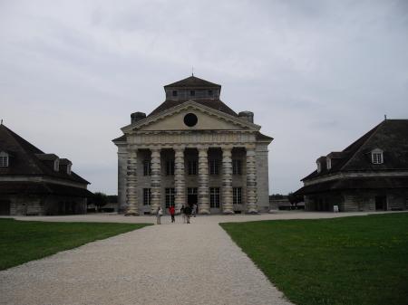 | Afin d'accroître la production régionale de sel, l'administration royale décide d'édifier une nouvelle saline à Arc et Senans, à 20 kilomètre de Salins dans le département du DOUBS. La Saline Royale fut réalisée entre 1775 et 1779, par Claude Nicolas Ledoux. Construite en forme de demi-cercle,elle fonctionnait comme une usine intégrée dans laquelle étaient abrités, non seulement les lieux de production du sel , mais aussi les lieux d'habitation des ouvriers. Pendant de nombreuses années, les hommes ont puisé la saumure du sous-sol pour en extraire le sel, bâtissant la notoriété de la ville de Salins les Bains(voir le lien). En juin 2009, les Salines de Salins les Bains et en 1982 Arc et Senans ont été inscrites sur la liste du patrimoine mondial de l' UNESCO. Il s'agit du tout premier ensemble industriel français à figurer sur cette liste. L'entrée de la Saline était le bâtiment des gardes. Claude-Nicolas Ledoux surprend par l'harmonie de son plan qui distribue en arc de cercle 11 bâtiments. Sur la droite se trouvaient les bâtiments de la maréchalerie. La matière première, la saumure ou eau salée, était extraite à Salins, puis acheminée jusqu'à la Saline d'Arc et Senans par l'intermédiaire de canalisations souterraines en bois longues de 23 kilomètres. Face à l'entrée, la maison du directeur avait vue sur tout l'ensemble des bâtiments. Ce bâtiment était les ateliers et lieux de vie des berniers(ouvriers du sel). De ce côté ci se touvrait la tonnellerie. Sur tout le long des facades se trouve l'allégorie de la saumure: un ornement répétitif d'une urne. La maison du directeur vue de l'allée centrale. Le portail d'entrée vue de la maison du directeur. Nous voyons bien cette forme en demi cercle élaborée par Claude-Nicolas Ledoux. Rendue rapidement obsolète par l'apparition de nouvelles technologies, la Saline Royale ferma ses portes en 1885. Les accés de sorties étaient bien protégés. En effet, le sel représentait l'or blanc de la région. La manufacture Royale du 18e siècle est un témoignage unique dans l'histoire de l'architecture industrielle. Une visite a ne pas manquer si vous êtes de passage dans la région. Il faut compter au moins la journée pour les bâtiments et les jardins d'Arc et Senans (voir le lien) .