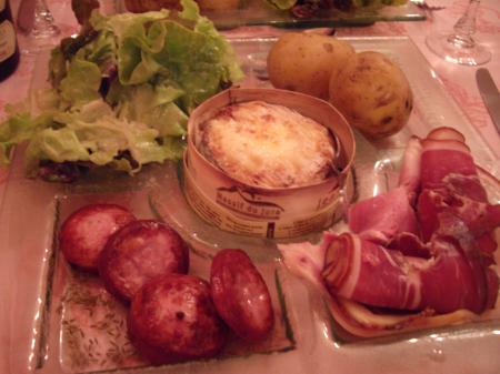 Boîte chaude à L'Edel de Cléron, charcuterie de pays, pommes de terre en robe des champs et salade.