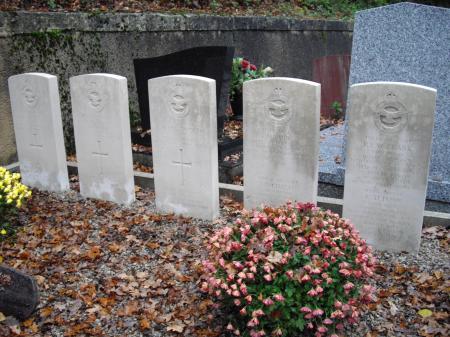 Nous arrivons au cimetière de Volmerange -les-Mines et nous rendons hommage aux 7 aviateurs britanniques tombés sous le feu des troupes allemandes en 1944 et enterrés au cimetière de Volmerange.