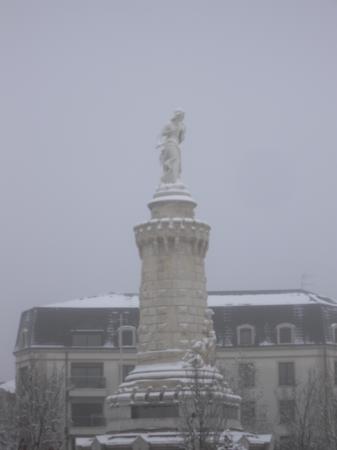 Cette sculpture représente une Mariane aux combats, elle est l'oeuvre du sculpteur dijonnais François Jouffroy. Vous pouvez retrouver d'autres ronds-points sur ce lien.