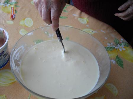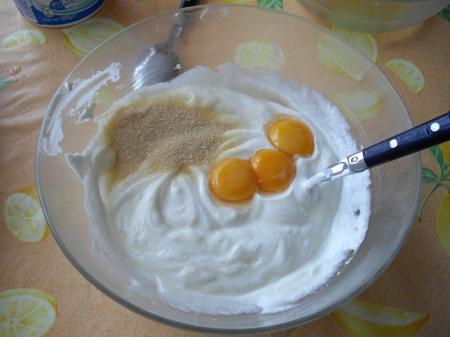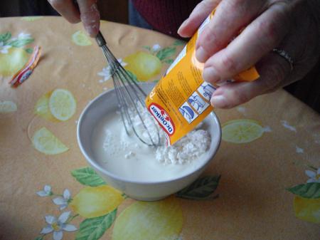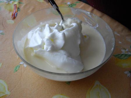 Réservez les blancs. Mélangez le lait et le pudding chantilly vigoureusement au fouet.