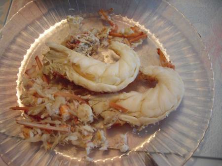 Quand la langouste est froide, prélevez la pulpe et coupez-là en médaillons.