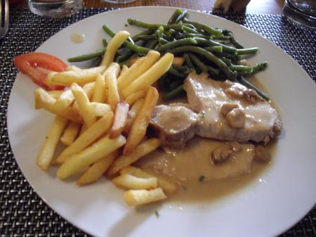 Le rôti de porc sauce aux champignons et ses légumes assortis.