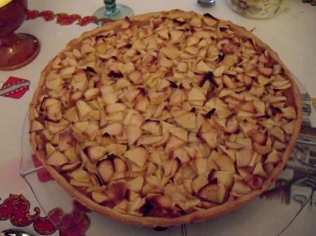 Pour accompagner le café, une tarte aux pommes sur un lit de compote de coings.