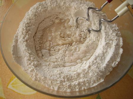 Ajoutez tous les ingrédients et pétrissez pour obtenir une pâte lisse.