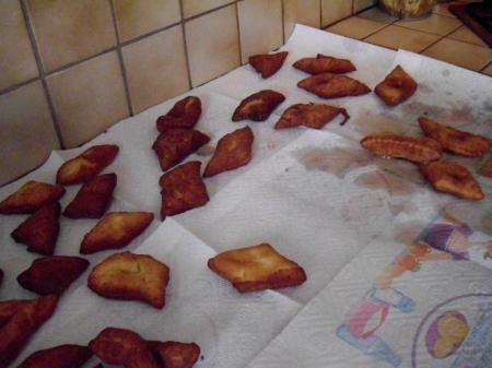 Étalez la pâte au rouleau et formez vos merveilles à l'aide d'une roulette. Faites frire vos merveilles et égouttez-les sur du papier absorbant.