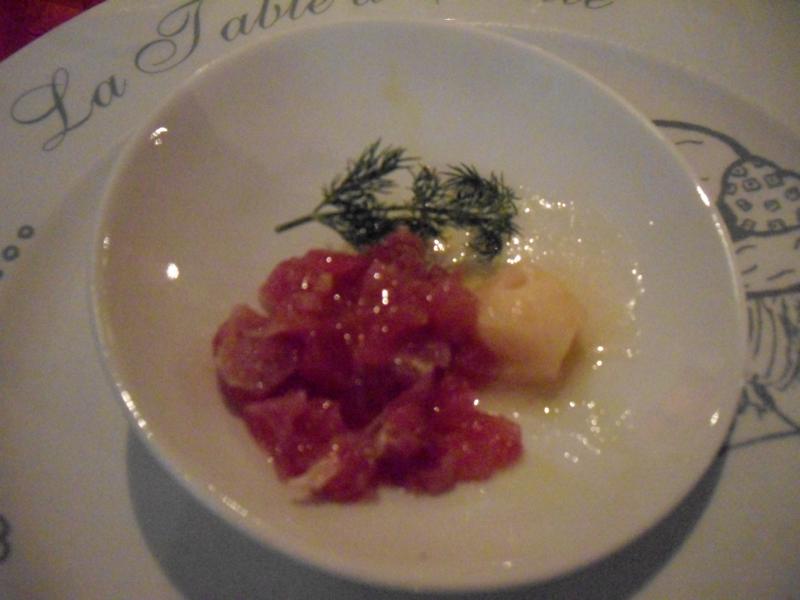 En entrée, nous avions le choix entre un martin fumé accompagné d'un tartare de tourteau aux agrumes, ou...