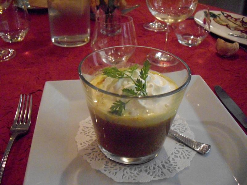 Nous voilà aux desserts et comme d'habitude, je préfère le chocolat, je choisis l'émulsion de chocolat à la framboise et sa glace à la vanille.