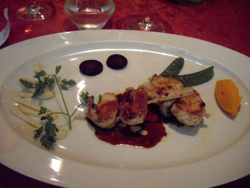 Pour la suite, Marc et moi avons choisi un tournedos de baudroie et brochette de lapin au jus de viande.