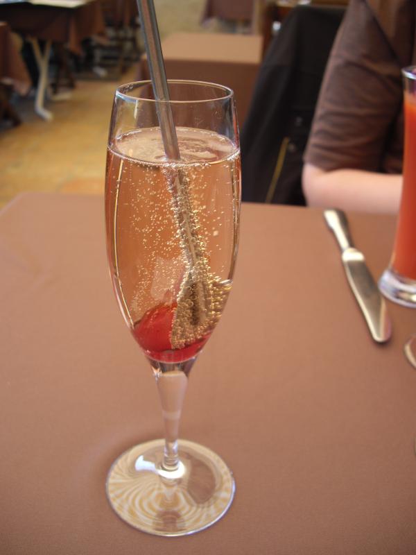 En apéritif, nous avons choisi un blanc de blanc, crème de pêche de vigne avec une fleur d'hibiscus confite.