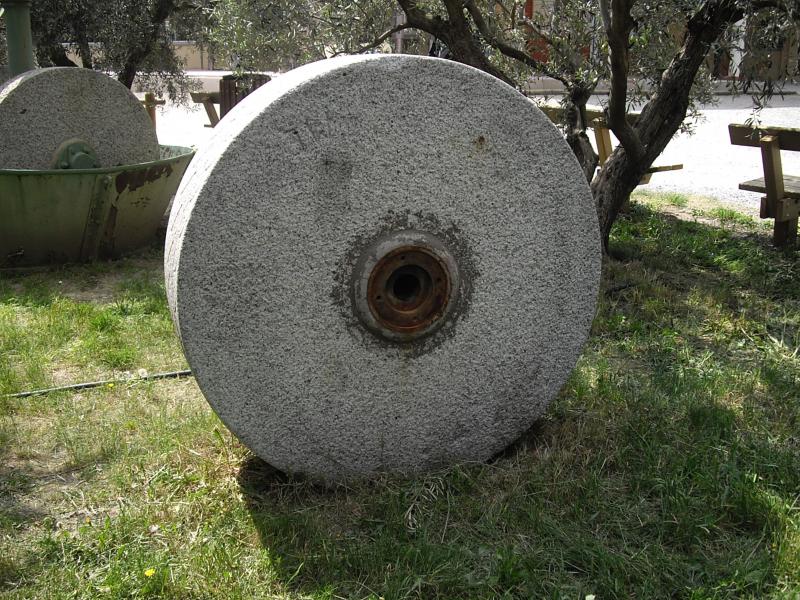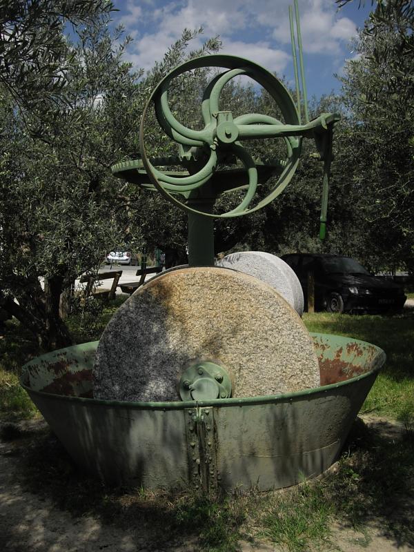 Deux fois par an, le moulin tourne à plein régime. Comme le faisaient les romains, les olives sont écrasées par deux meules.