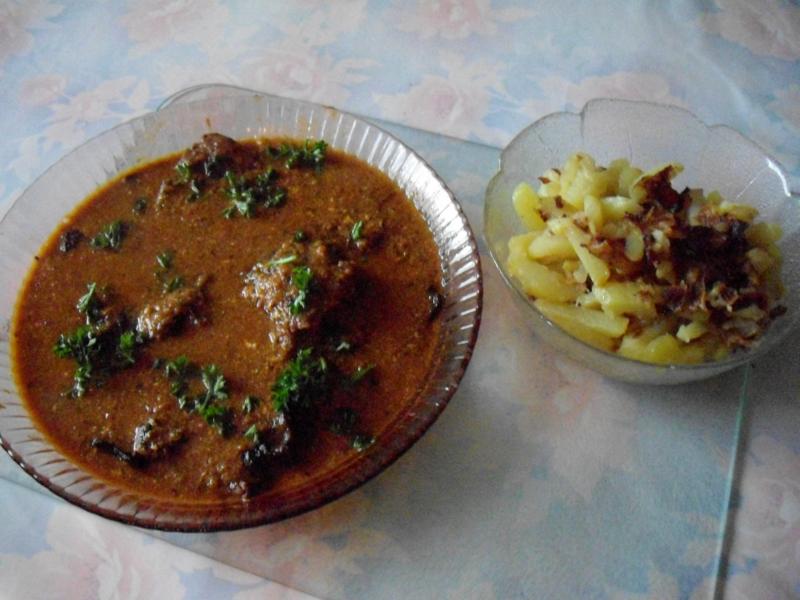 Saupoudrez de persil haché et servez accompagné de pommes de terre rôties.