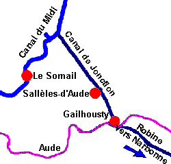 Le canal de jonction est entièrement situé sur la commune de Sallèles d'Aude, il mesure 8 km de long.