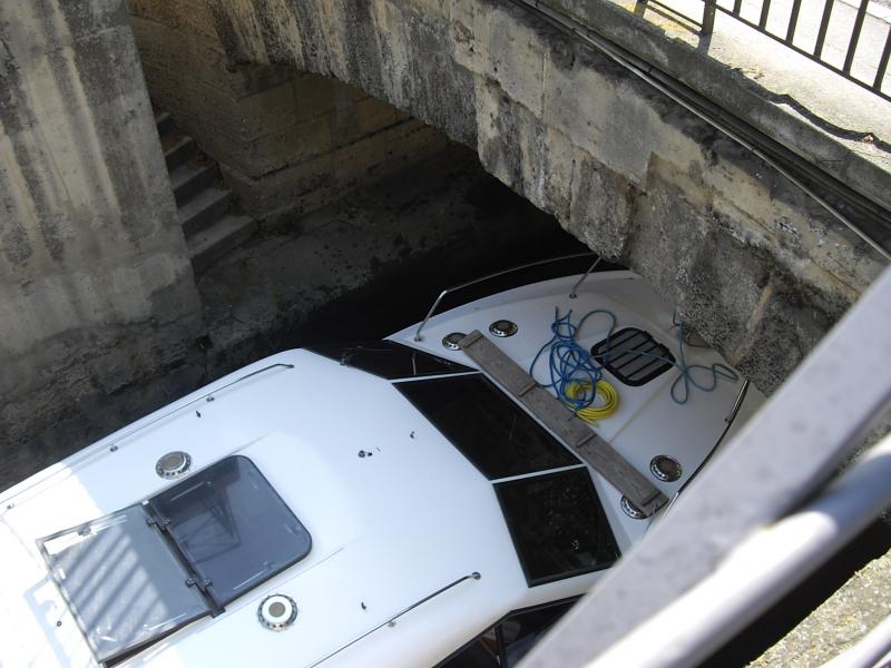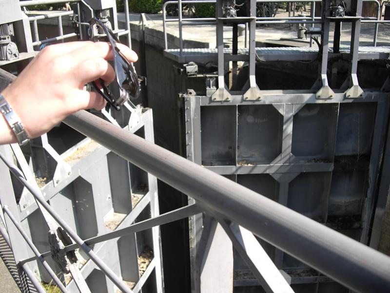 Nous suivons de près la manoeuvre d'un petit bateau passant l'une des 7 écluses du canal de Jonction.