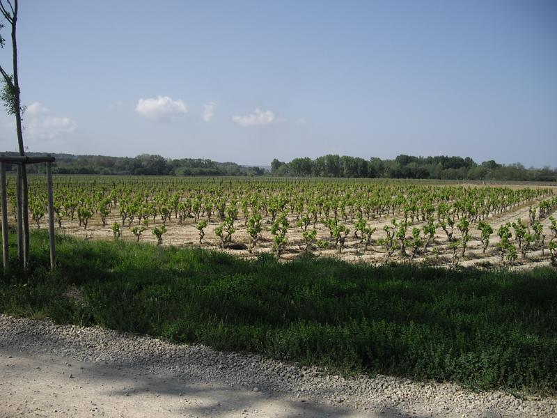 Tandis qu'on suit le canal sur notre gauche, le côté droit est un grand champ de vignes.