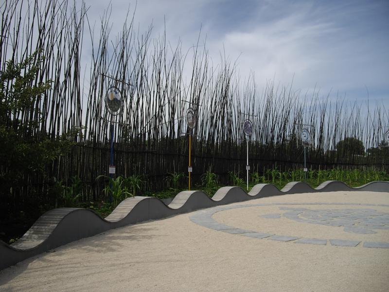 Conçu à la manière d'un labyrinthe, on déambule dans ce jardin en ayant la possibilité de goûter à de nombreux petits fruits.