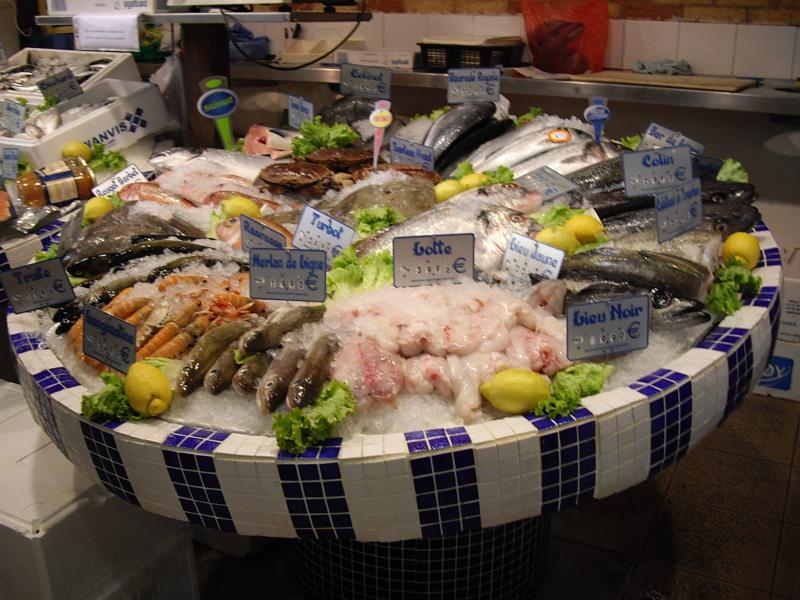 Plusieurs poissonneries sont ouvertes mais j'ai bien aimé cette présentation bien en rapport avec le poisson.