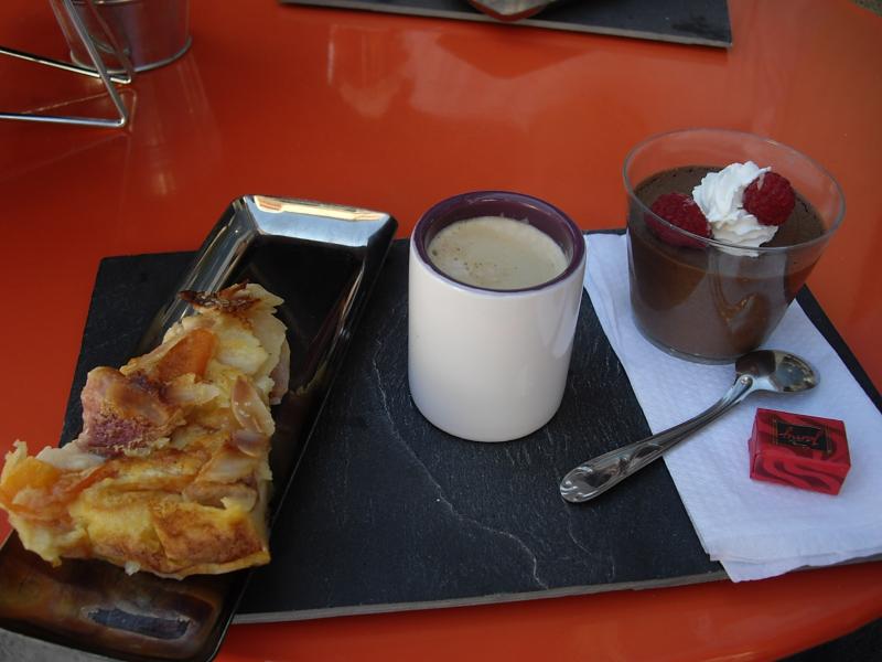 L'assiette gourmande est constituée d'une part de clafoutis, d'une mousse au chocolat et d'un café.